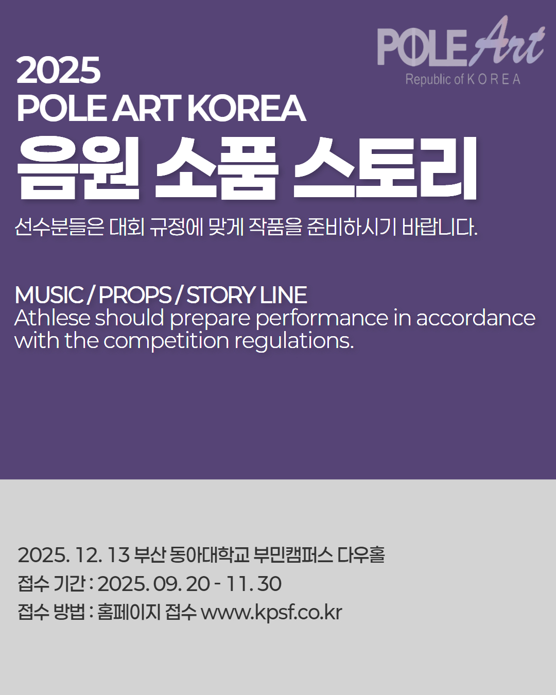 Pleasr refer to the POLE ART KOREA RULES for the regulation of the sound source, props, story line.